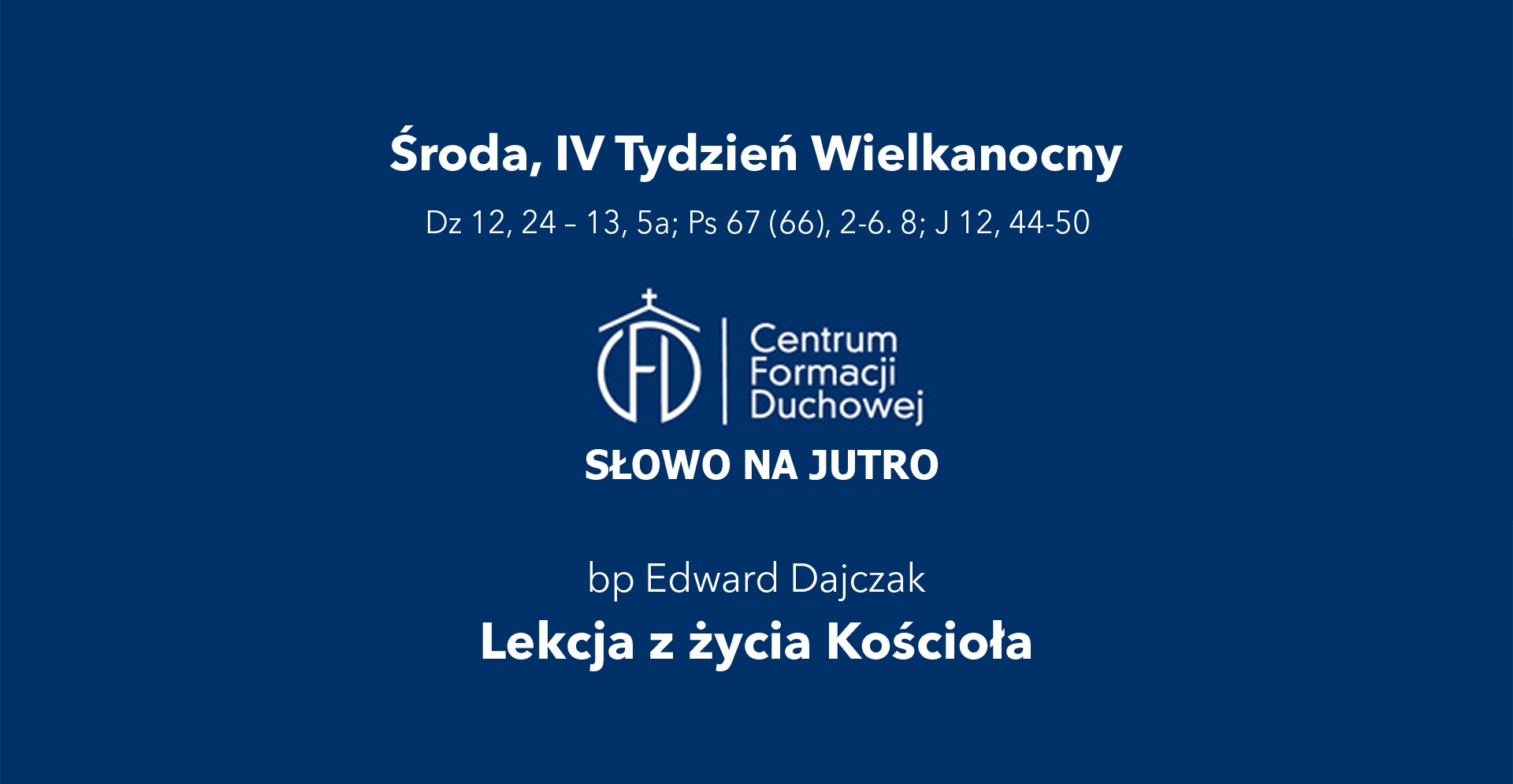 Zapraszamy do wysłuchania rozważania bpa Edwarda Dajczaka na środę czwartego tygodnia wielkanocnego (wtorek, 27 kwietnia 2021, godz. 21.00).